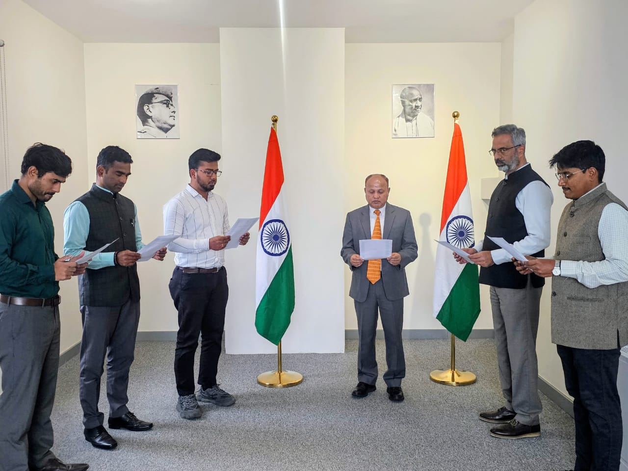 On the occasion of Constitution Day, the Preamble of the Constitution of India was read by Ambassador H.E. Shri Ravindra Prasad Jaiswal and staffs of the Embassy.