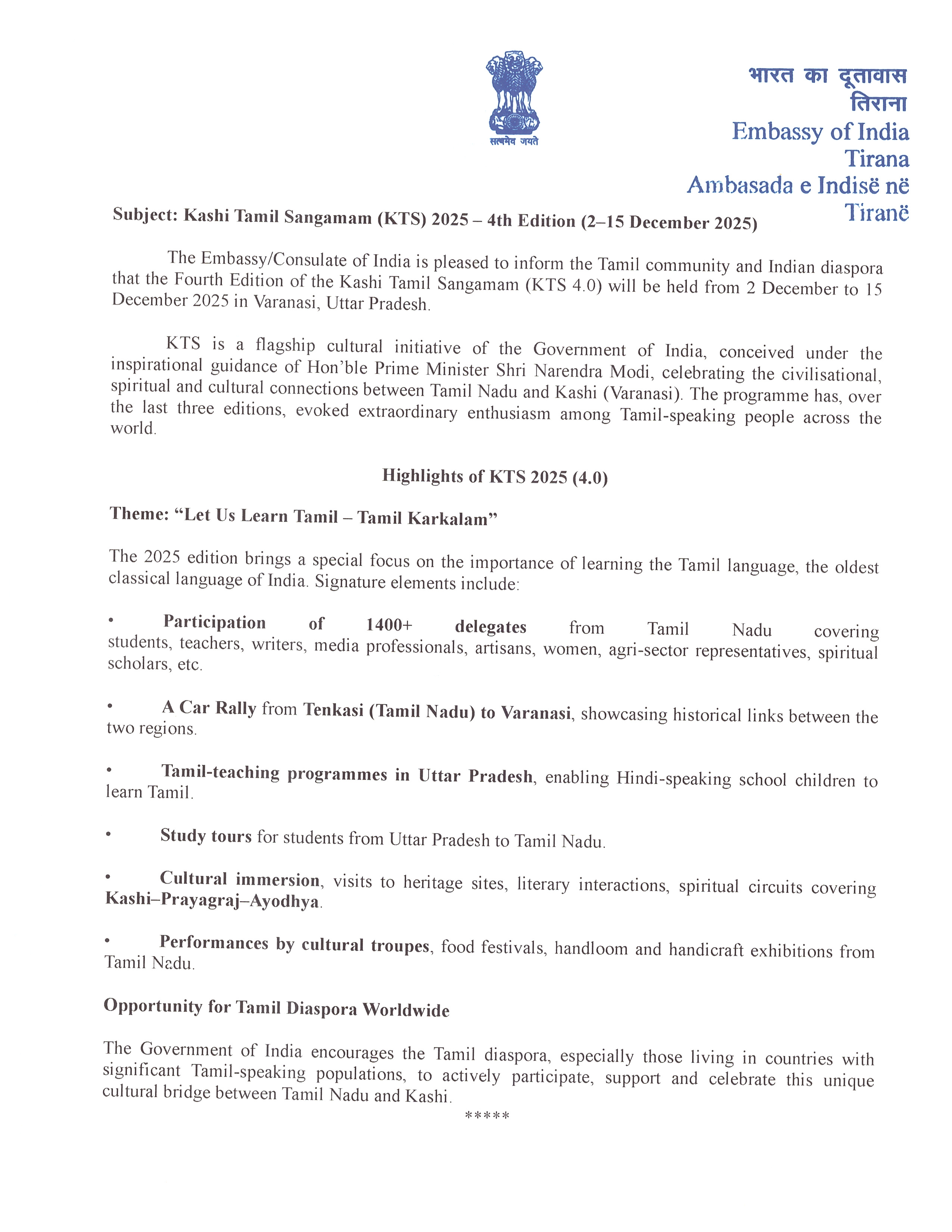 Kashi Tamil Sangamam (KTS) 2025 – 4th Edition (2–15 December 2025)